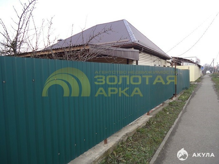 Продается благоустроенный дом на земельном участке 15 соток в самом центре станицы. Все коммуникации на участке: газ, свет, вода. Дом 76 кв.м., в доме сан.узел, отопление магистральный газ, отдельно кухня с комнатой отдыха, два навеса, сад плодоносящий занимает 4 сотки. Ширина фасада 27 метров. Расположен участок на федеральной трассе. Прекрасная возможность использования под коммерческое назначение. Вся инфраструктура в шаговой доступности:все магазины, остановка транспорта всех назначений. При звонке сообщите нам ID объекта 521034
