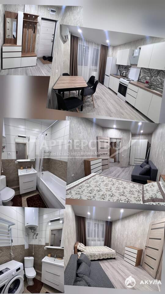 · Оснащение: кухонный гарнитур, плита, холодильник, стиральная машина, кондиционер, кровать, диван. Есть всё необходимое для комфортного проживания.