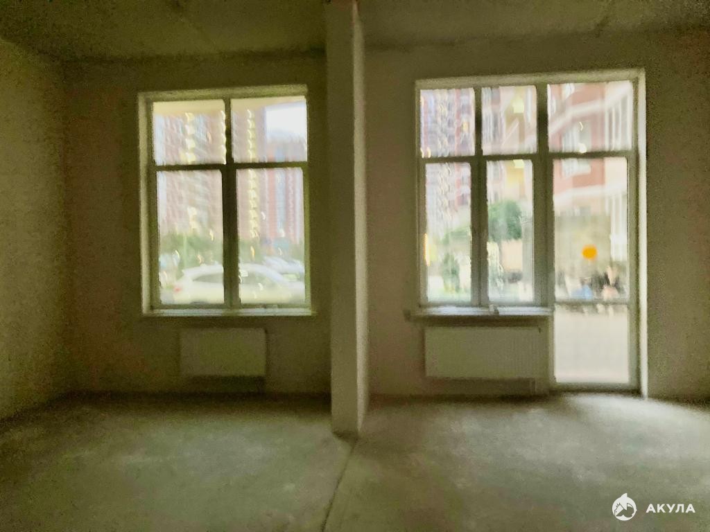 Помещение расположено на 1 этаже монолитно-кирпичного дома, площадь 60 кв.м, витражное остекление, свободная планировка, потолки 3, 5 метра, две входные группы,