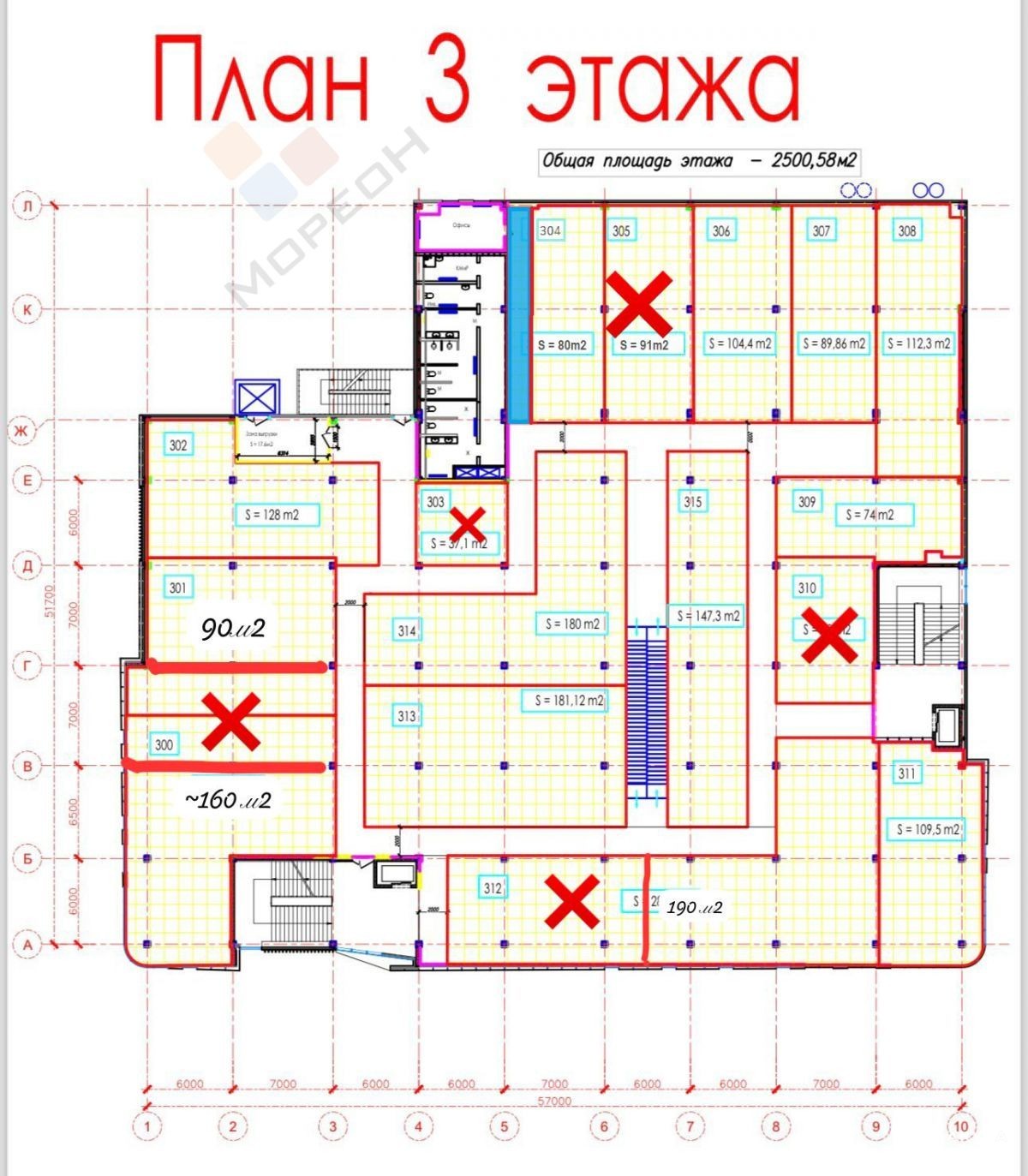 - 2 500 м²