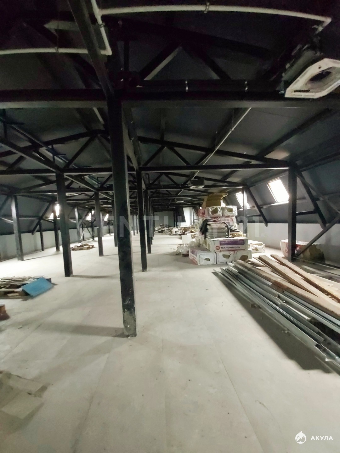 Высота потолков в 4 м, свободная планировка.