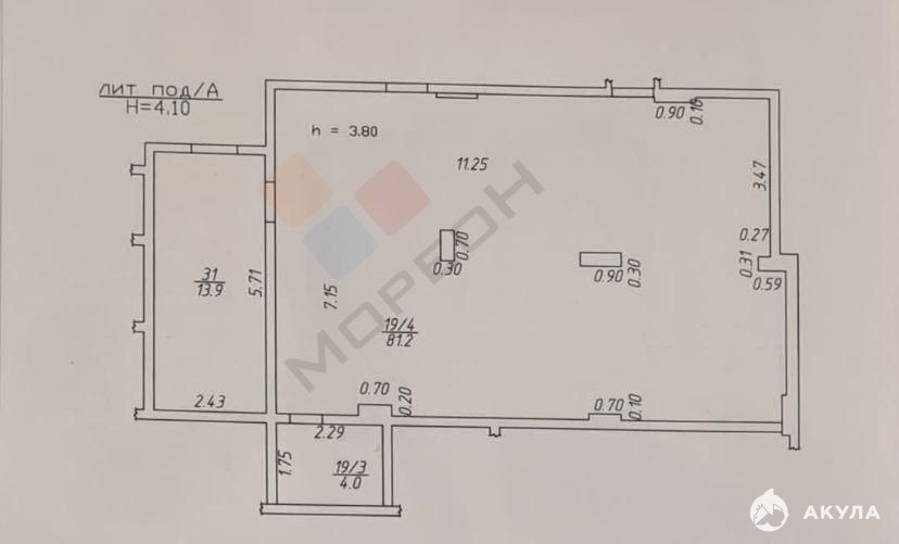 - высота потолков 4 метра