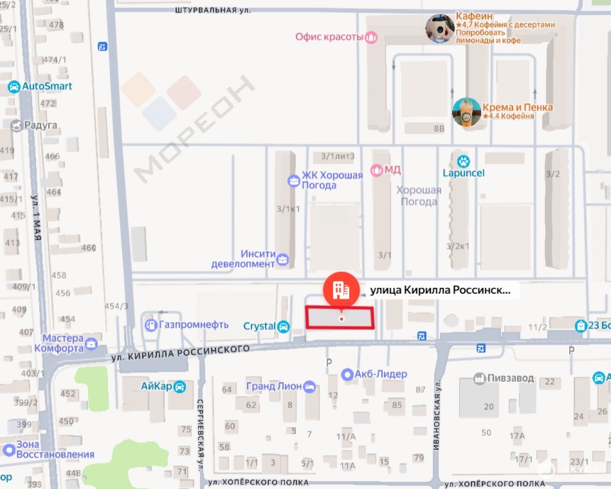 Сдается в аренду торговая площадь по ул Кирилла Россинского 5:Площадь 100 м2200 кВтотдельные входные группы со стороны улицы (Кирилла российского) и со стороны ЖК Хорошая погодаПарковочные места у фасадаОгромный автомобильный трафикЧасть площади уже занимает МагнитЕдинственное место в данном районе которое сосредоточит в себе всю торговлю.Не упустите свой шанс занять привлекательную точку для торгового бизнеса.Номер объекта: #5/1687326/3069