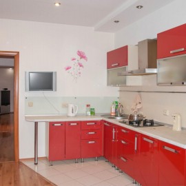 ___ 1 к-я квартира, г. Ейск, ул. Красная. Современная квартира на 4-м этаже 6-этажного, элитного, кирпичного дома. Общая площадь квартиры 45, 5; жилая – 22, 6; кухня 13, 1 кв. м. с двумя застекленными лоджиями на разные стороны дома. К морю – около 1, 5 м. ___ Год постройки - 2005. Материал...