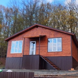 Арт. 61526516 Уютный каркасный дом из экологически чистых материалов, предназначенный для круглогодичного проживания. Размер 6х8м со вторым светом 48м2. Планировка дома: 1 этаж - Кухня-гостиная 20м2 2 Спальни по 10м2 Санузел 4м2 Холл 5м2 Терраса 6х2м Комплектация: Снаружи отделка стен...