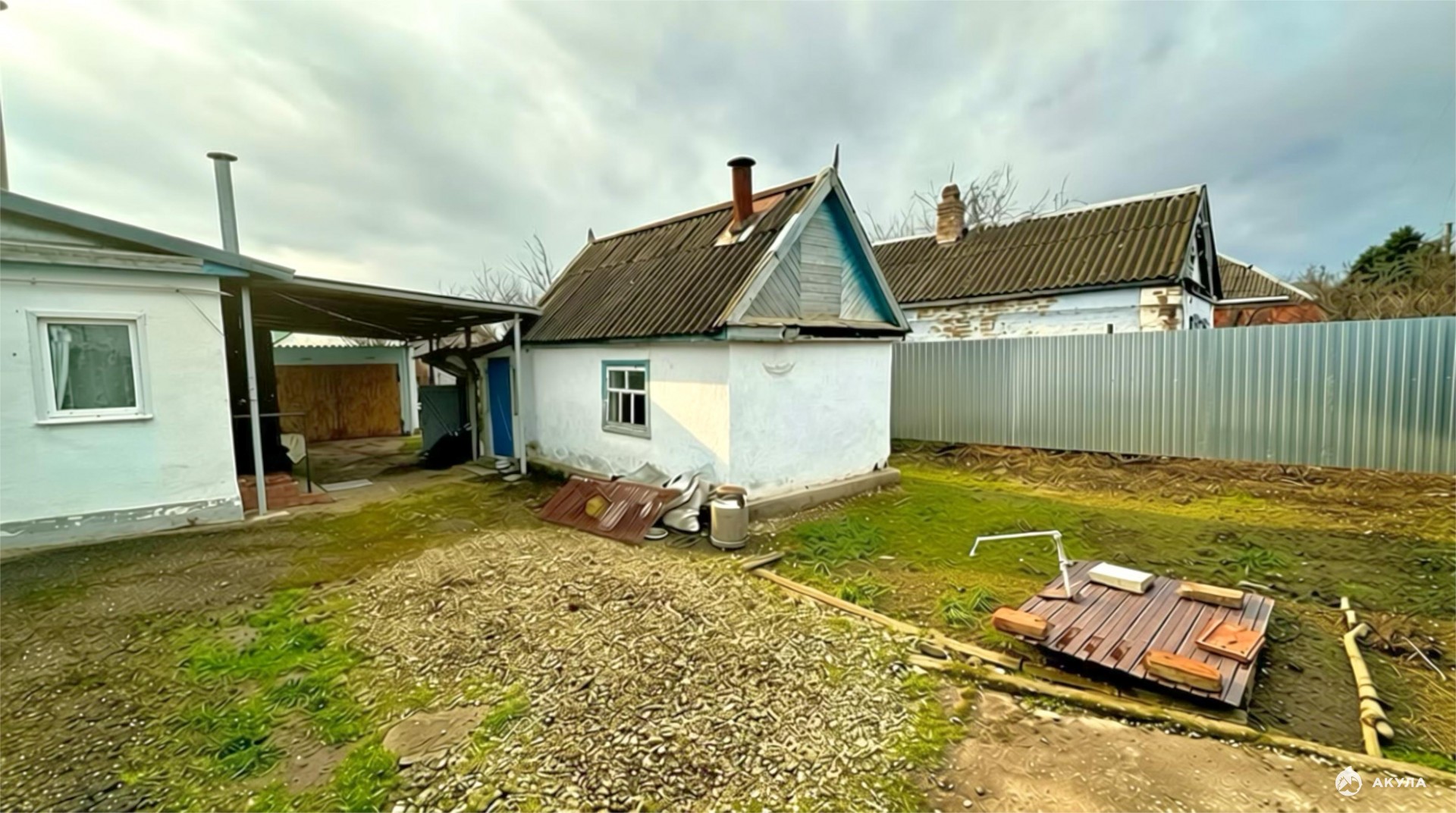 Участок 4.3 сотки, есть навес и зона отдыха.