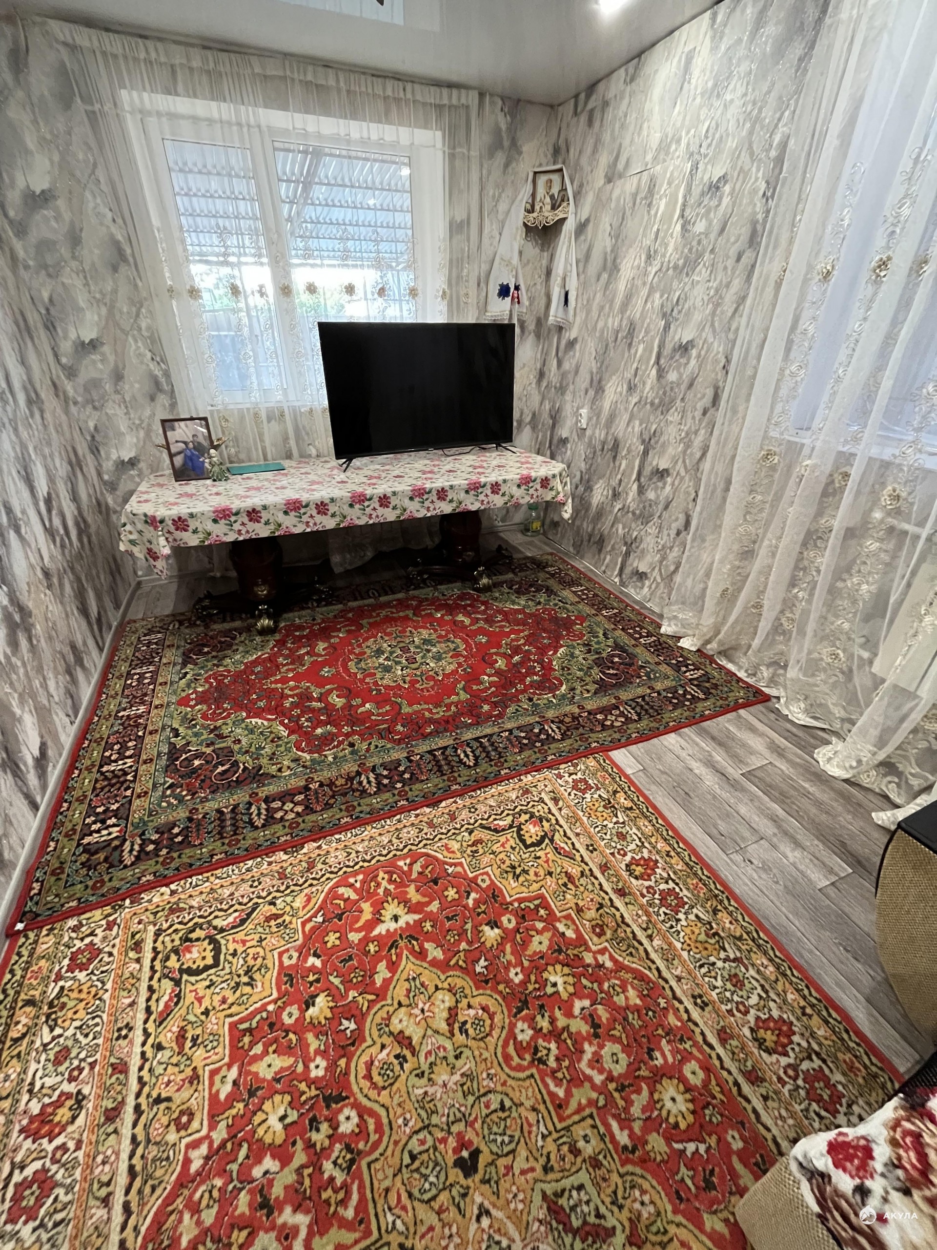 В доме две большие комнаты, коридор котельная. Ремонт , новые окна. Во дворе имеется большой гараж, хозяйственные постройки, отдельно стоящая летняя кухня, туалет на улице. Новый навес на весь двор. Также на участке плодовые деревья и собственный сад.