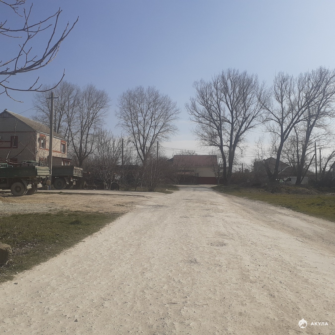 Все коммуникации проходят по улице, рядом жилые дома.
