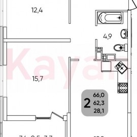 В продаже 2х- комнатная квартира на стадии строительства в ЖК "Мечта" со сдачей в эксплуатацию в первом полугодии 2026 года. Дом монолитный, предусмотрено индивидуальное отопление. Объект отличает функциональная европланировка - наличие кухни- площадью 12, 3 кв.м, спальни 12.90...
