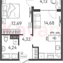 Квартира в ЖК «Восточный (Квартал №6)» (ВКБ-Новостройки. Краснодар) литер 12 очередь 6, Панельный, 2 к.кв., 52.8 кв.м., 9/16, высота потолков: 2.7 м, жилая площадь: 30.51 кв.м., возможна ипотека, площадь кухни 10.48 кв.м., ЖК «Восточный (Квартал №6)» — комплексная застройка из панельных...