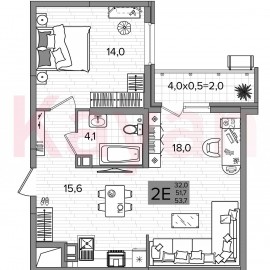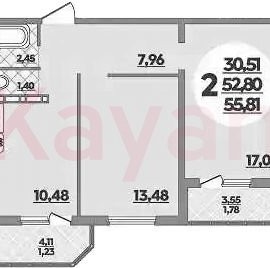 Квартира в ЖК «Восточный (Квартал №6)» (ВКБ-Новостройки. Краснодар) литер 16 очередь 6, Панельный, 2 к.кв., 52.8 кв.м., 5/16, высота потолков: 2.6 м, жилая площадь: 30.51 кв.м., возможна ипотека, площадь кухни 10.48 кв.м., ЖК «Восточный (Квартал №6)» — комплексная застройка из панельных...