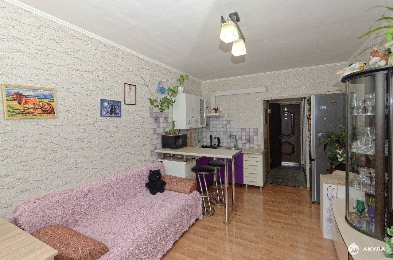 Студия, расположена на комфортном 3 этаже пяти этажного жилого дома . Студия с большим окном, из которого открывается прекрасный вид на Супсех! Общая площадь 24, 7 кв.м. , комната с кухонной зоной. Кухонная зона оформлена барной стойкой, качественным фартуком, необходимыми шкафчиками и тумбами. Санузел оформлен с применением качественных материалов и сантехники. Проведен интернет. В прихожей остается шкаф, в санузле остается ванна, раковина, унитаз.