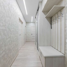 Жильё с удобной планировкой и рациональным распределением функций. Входная часть - коридор с большим встроенным хранилищем и минималистичными дверями. Напольное покрытие светлое, освещение точечное. Кухня и гостиная объединены в одно открытое пространство. Линейный...