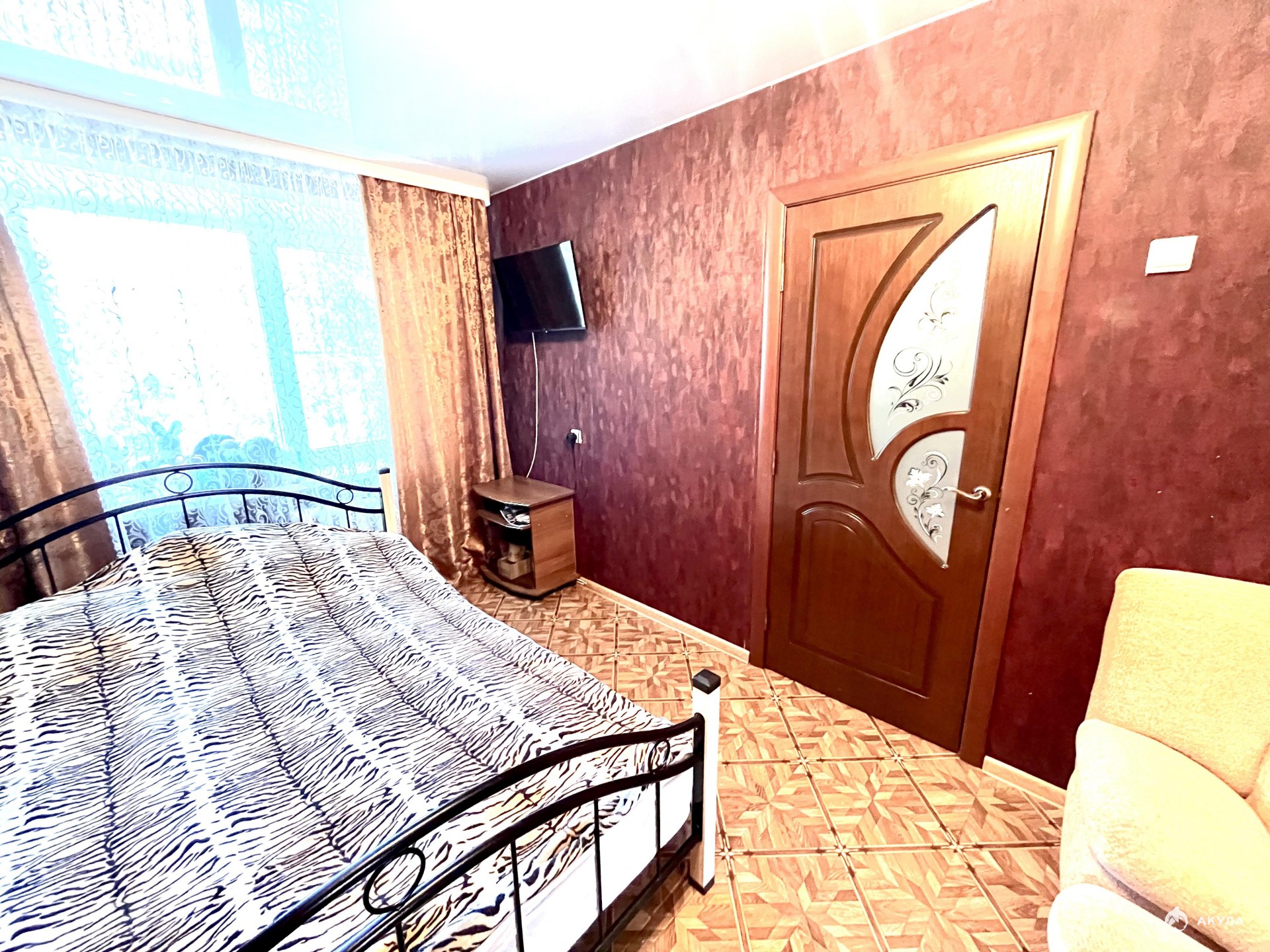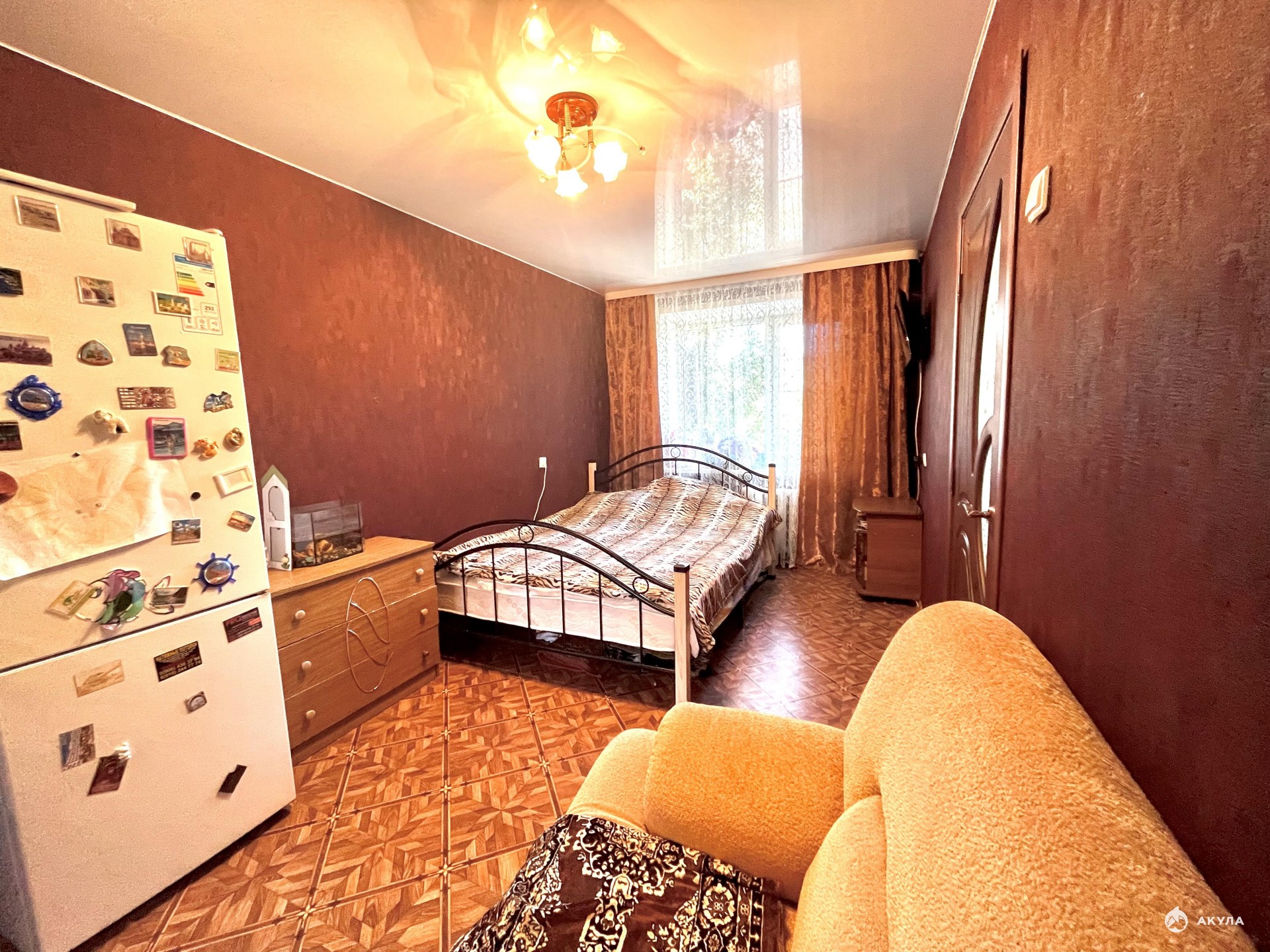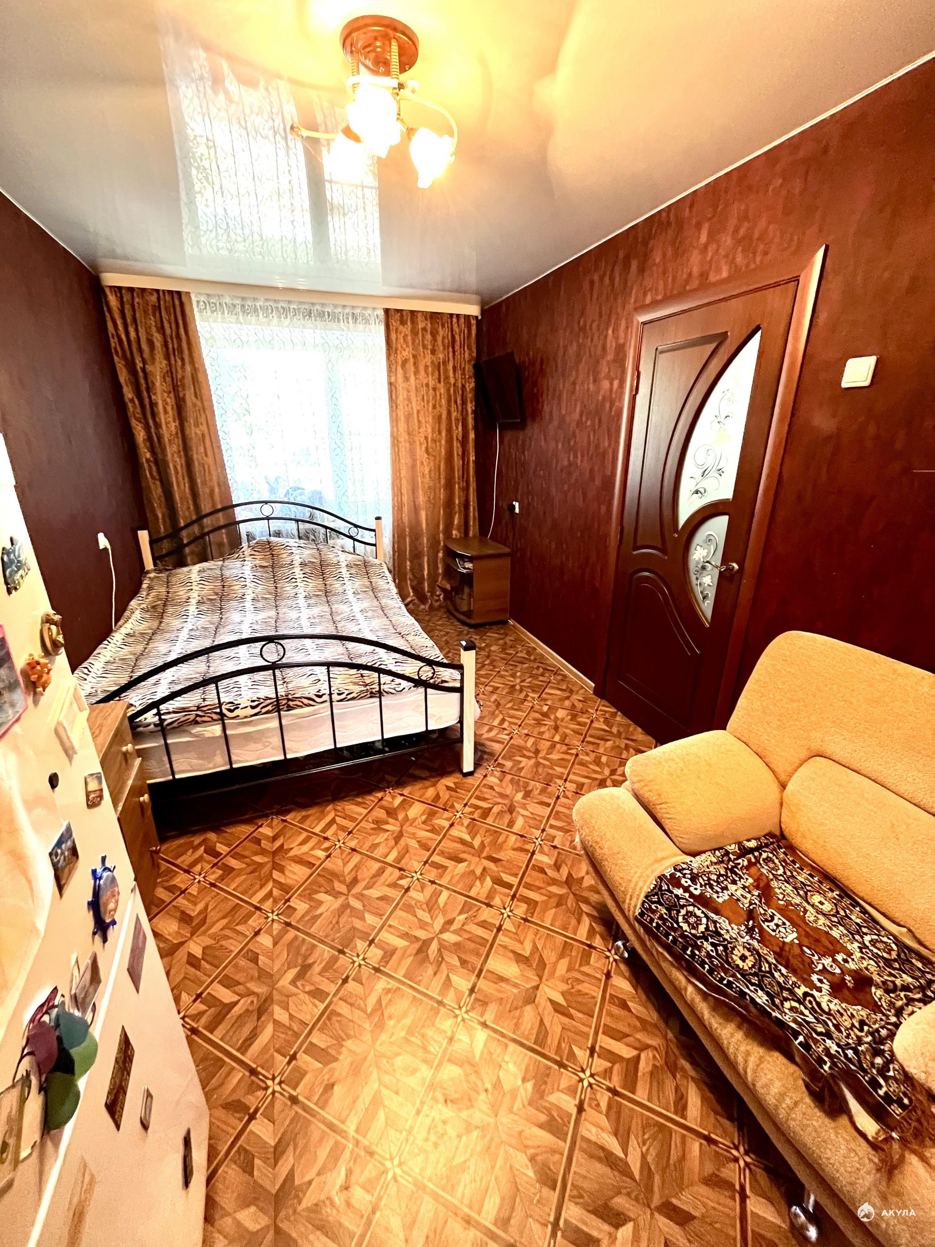 Две комнаты, кухня, коридор и сан узел являются удобствами общего пользования. В квартире выполнен косметический ремонт, имеется кондиционер.