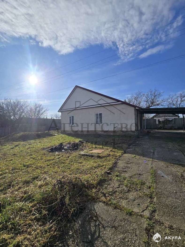 Предлагаю купить дом 54.2кв м, 2спальни , кухня и с/у , дом тёплый, расположен на ровном земельном участке у асфальтированной дороги, обнесён забором , имеет два заезда, сделан навес. В хуторе есть детский сад, школа, амбулатория, магазины, 40 км до Чёрного моря и 40км до Азовского, ж/д станция 4км в ст.Варениковской.