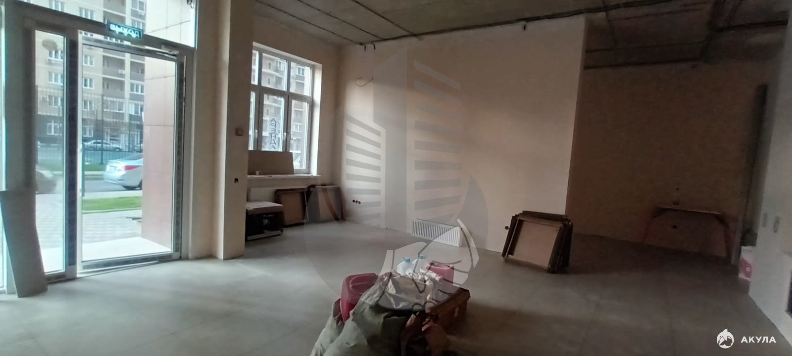 Офисный ремонт, осталось побелить стены. Высокие потолки - 3 м., два окна, плюс витражная входная группа. Отдельный вход, как на фото, коммуникации центральные, заведены в помещение, электричество 15 кВт, огромный санузел, что позволяет выделить место под кладовку. Окнами на детскую и спортивную площадку, между 38 и 36 домом. Все для вашего бизнеса.