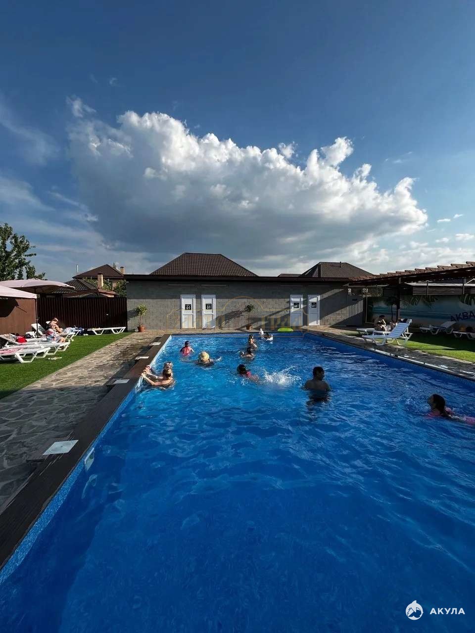 Строение коммерческого разначения 40 кв.м под ресепшен, магазин. Монгальная зона. Беседки для отдыха, можно их количество увеличить. Строение для гостей 50 кв.м: душевые, место для переодевания, сан узел. Хоз блок для очистки воды и прочего инвентаря.