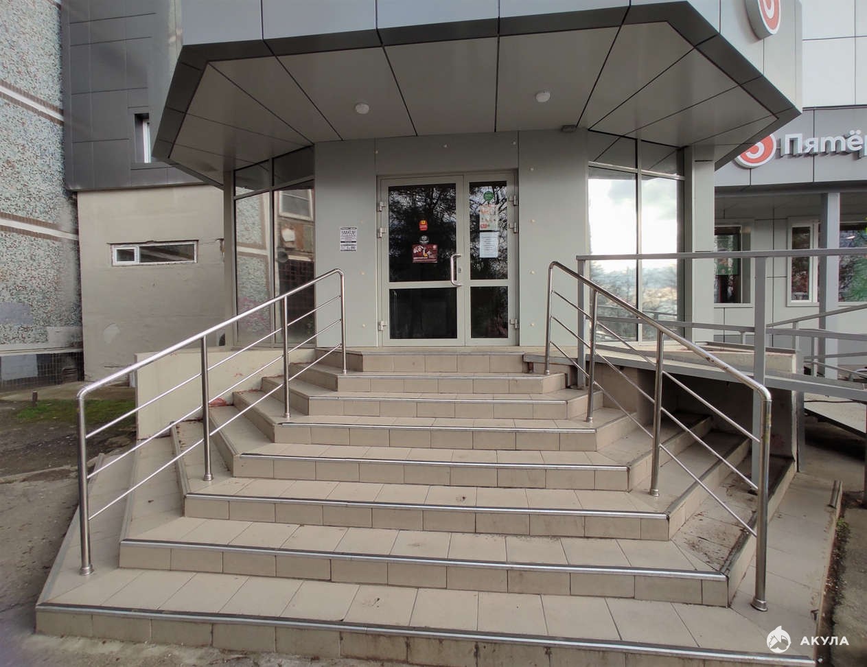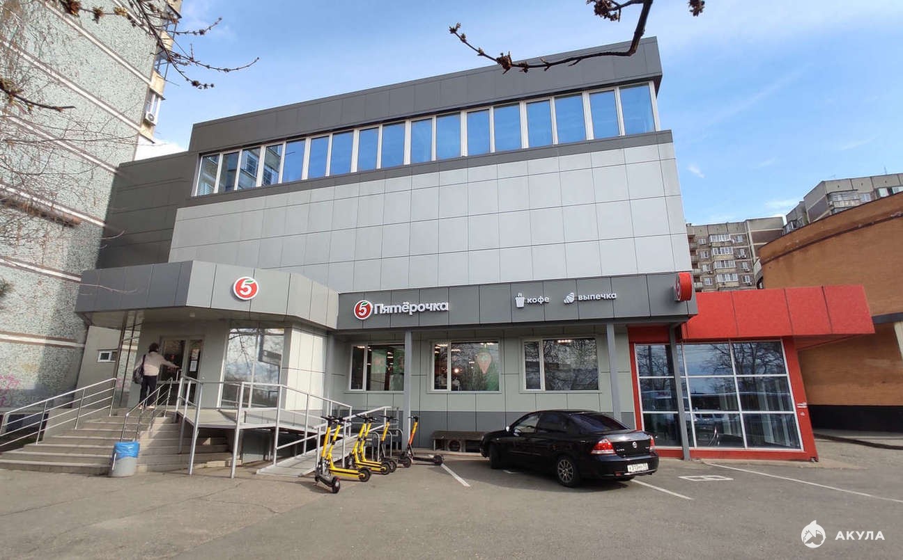 На первом этаже находится супермаркет Пятерочка.