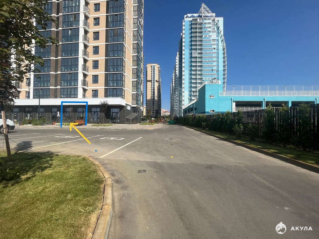 На территории огромная парковка для автомобилей, все жители которые паркуются на этой площадки, проезжают и идут мимо данной коммерции.