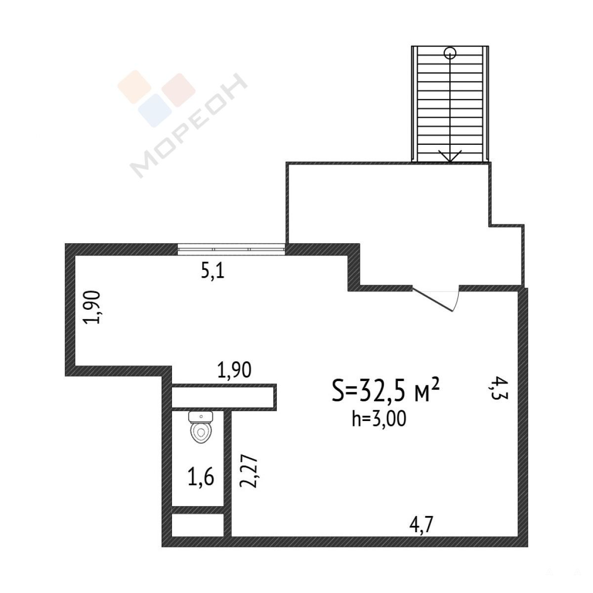 • Высота потолков: 3 метра, светло и просторно.