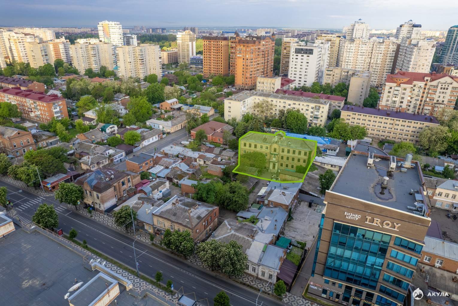 Объект расположен в исторической части Краснодара, на второй линии ул. Октябрьской. Окружение сформировано жилой застройкой, социальными учреждениями, объектами торгового и административного назначения. Рядом расположены детский сад, сквер Дружбы. Возможное использование: мед. центр, отель, штаб квартира, офис.