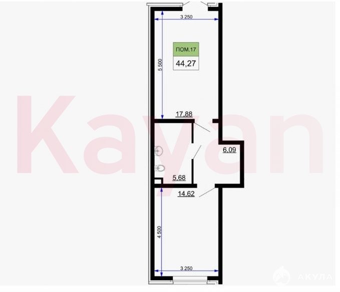 Площадь 44.3 м2