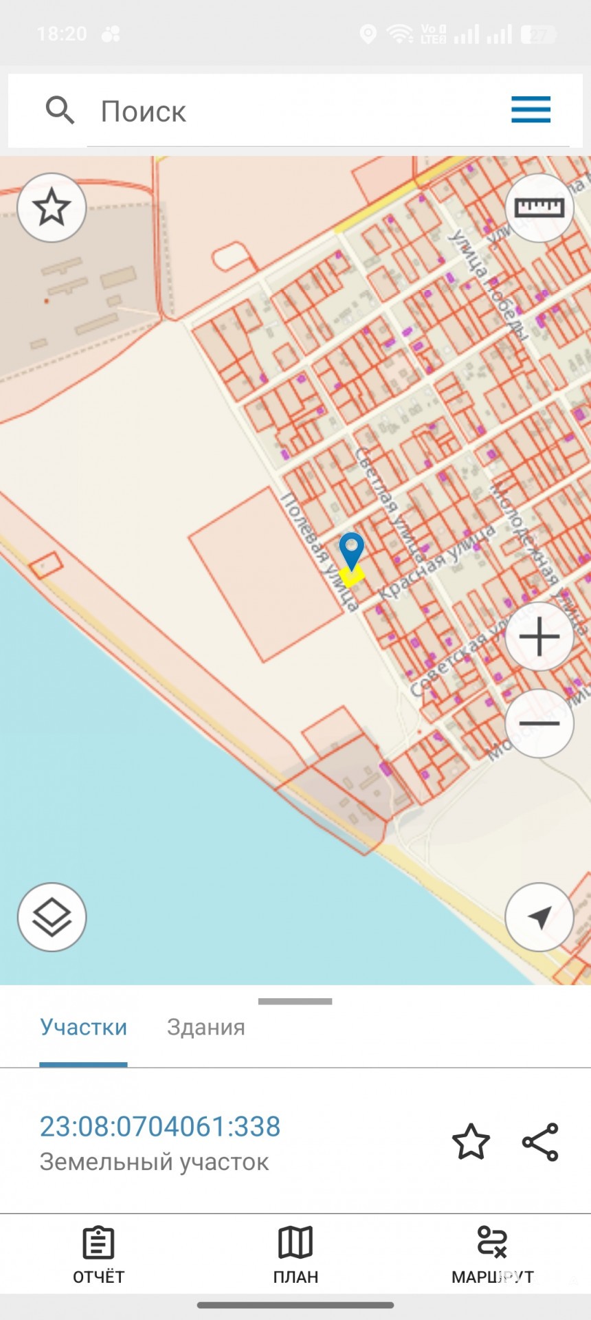 - Площадь участка
