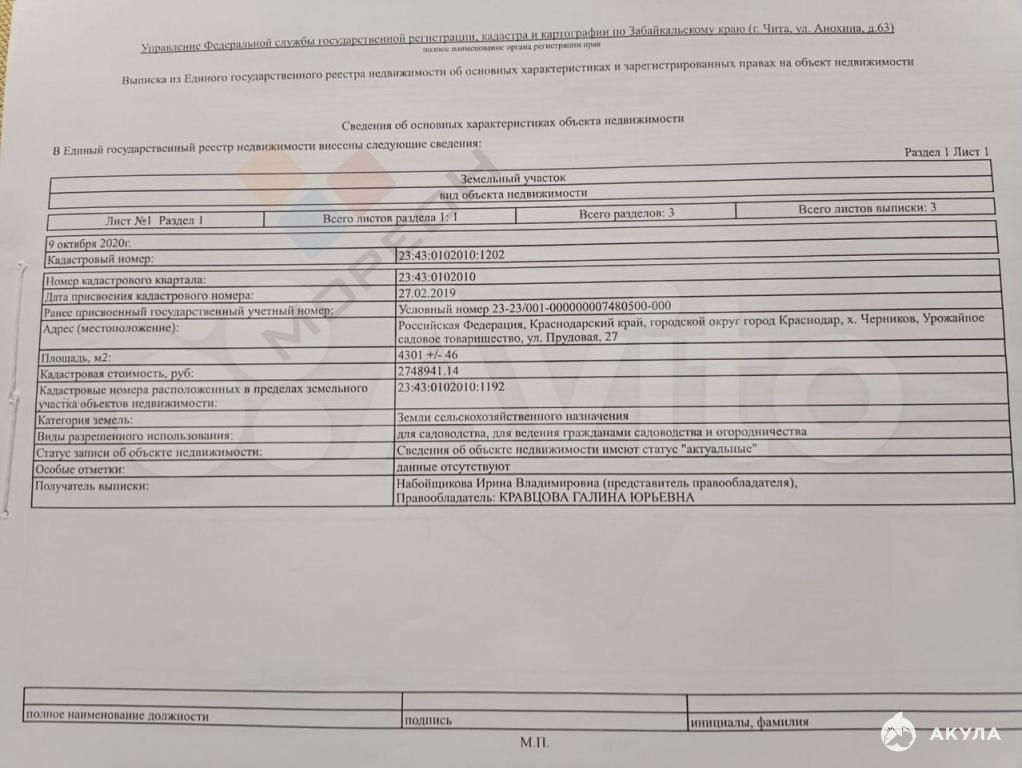 Краснодарский край, Краснодар, округ Прикубанский, тер. СНТ Строитель (п Белозерный), ул Прудовая, 27
