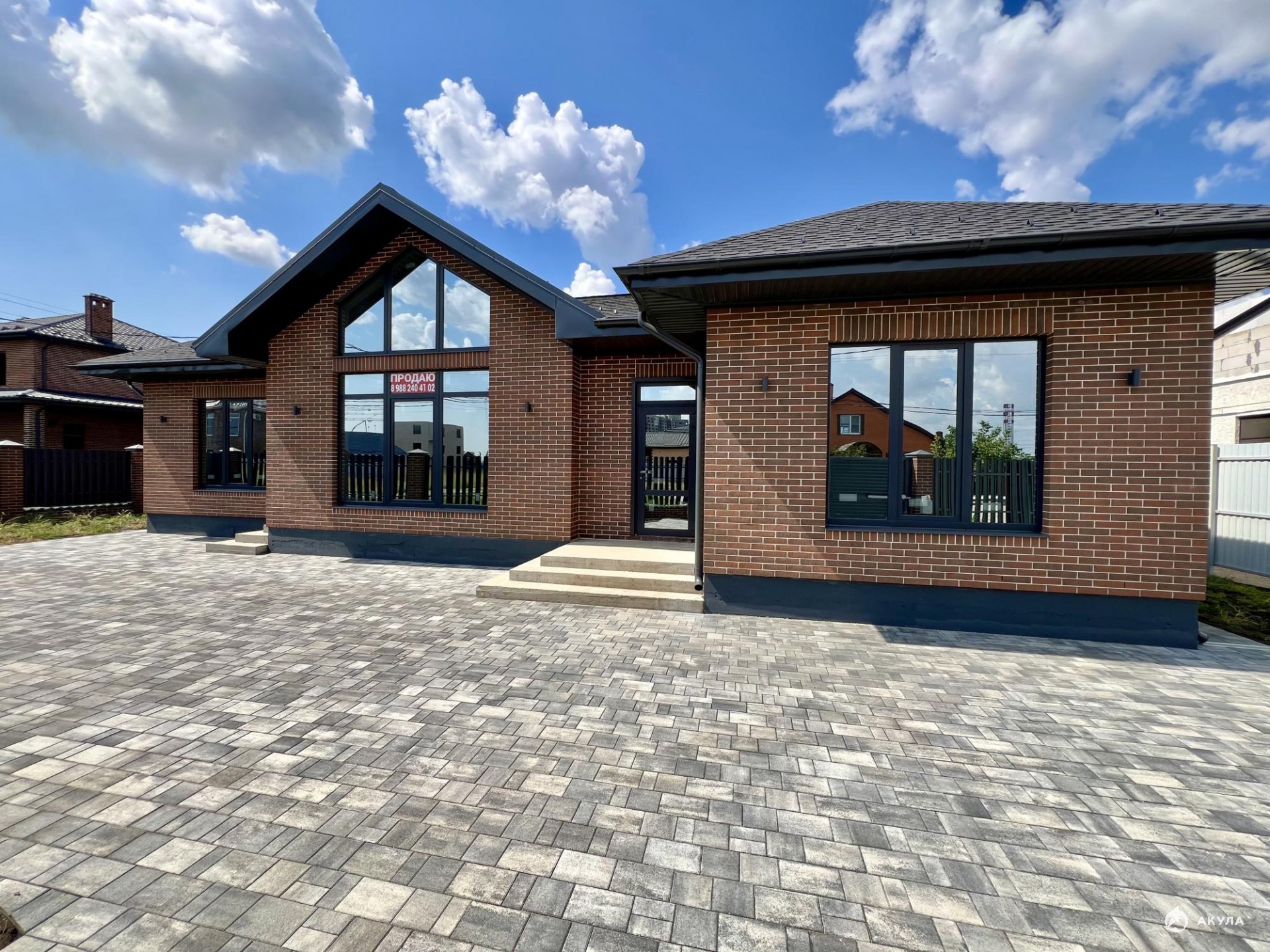 Продаю одноэтажный дом 100 м2 в п.Новознаменский на 4 сотках земли. Отличная планировка, никакой бесполезной площади, рациональное использование всей территории: 3 спальни, санузел, большая кухня-гостинная с выходом во двор. Парковка на 2 машины, а главное Центральные коммуникации!!! Уличное освещение вокруг дома и на фасаде дома. Основные характеристики: -Материал стен газоблок 25 см с облицовочным керамическим кирпичом 12 см. -Кровля мягкая Техногиколь Ранчо серый -Высота потолков 3 метра. -Роллетная калитка и ворота Alutech на пульте. -Пластиковая входная дверь Elex. -Металлопластиковые окна Elex высокого качества - забор из металлопрофиля по периметру и штакетника по фасаду. -Парковочное место и отмостка дома армированны и забетонированы. Коммуникации центральные: - газ по меже, вода, свет 15 Квт; +септик(9 м3) и скважина. Дом продаётся в предчистовой отделке(штукатурка и разводка электрическая по проекту). Фото и видео отчёт всех этапов строительства предоставляю по запросу. Прописка г. Краснодар. В непосредственной близости школа, детский сад, аптеки, магазины (Магнит, Пятерочка), остановка общественного транспорта. Детская площадка в 100 метрах от дома. Расстояние до моря 120 км. Хотите красивый дом в Краснодаре? Звоните! Ипотека. Торг