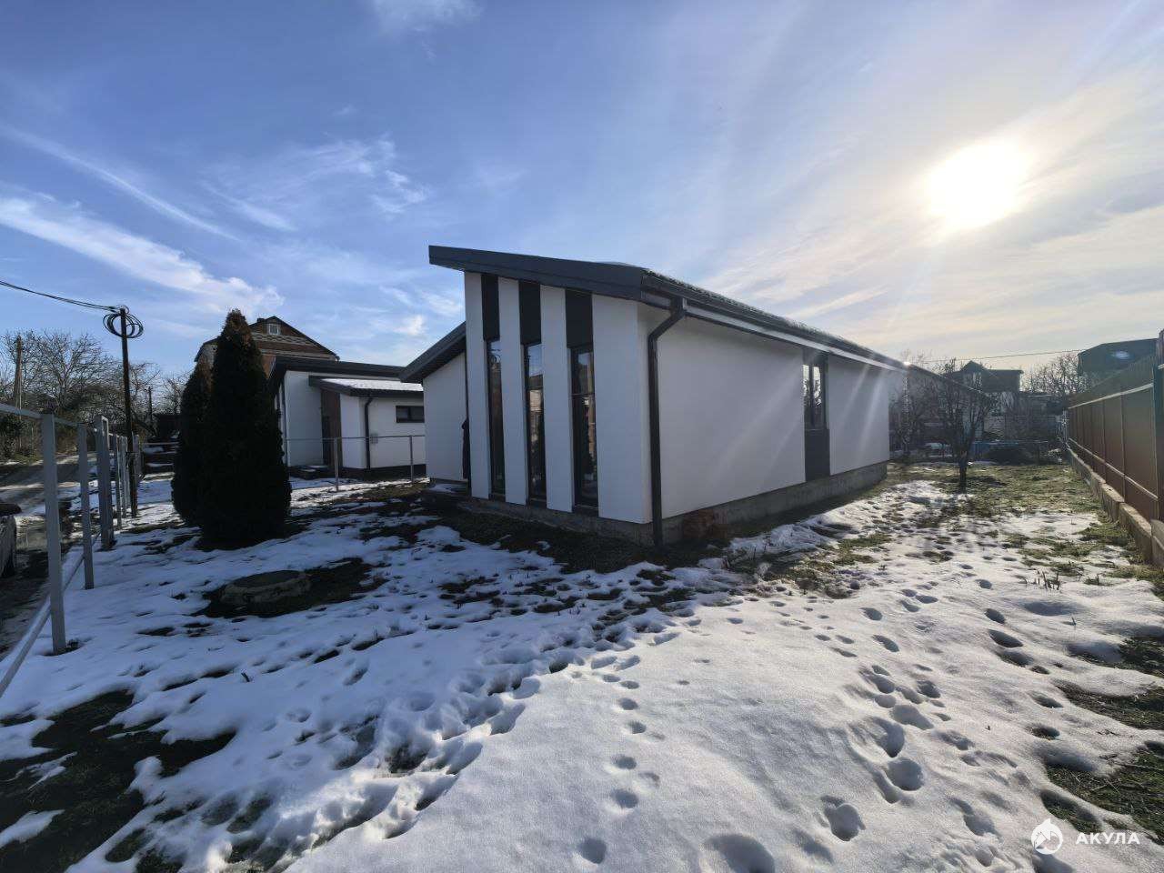В доме высокие потолки 4, 5 м, которые помогут воплотить в жизнь любые дизайнерские идеи! Установлены высокопрочные мультифункциональные стеклопакеты. Прочная сейфовая входная дверь. К дому подведено электричество 15 кВт, выведен автономный септик. По периметру установлен каркас под забор, который может установить исходя из своих собственных предпочтений.