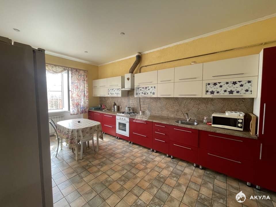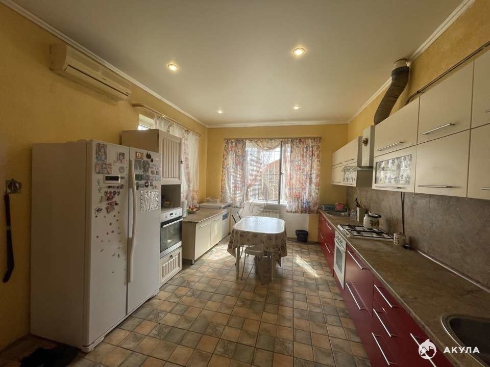Продается дом для большой семьи в Новознаменском. Общая площадь 260кв м, жилая площадь 90кв м. Дом построен добротно, полностью из кирпича. Три этажа: цоколь (сухой, не подтапливает), 1 этаж: прихожая, кухня 20кв м, зал, спальня, гардеробная, сан узел; 2 этаж: зал, четыре изолированные спальни, сан узел. Центральные коммуникации в доме: свет, вода, Газ. Канализация: септик (есть возможность подключиться к центральной канализации). Земельный участок 7 соток, парковка во дворе на 3-4 машины, плодовые деревья, хоз постройки. Перед домом зона отчуждения. Благополучные соседи. В близкой доступности детский садик, школа, спорт комплекс, магазины, остановка общественного транспорта.
