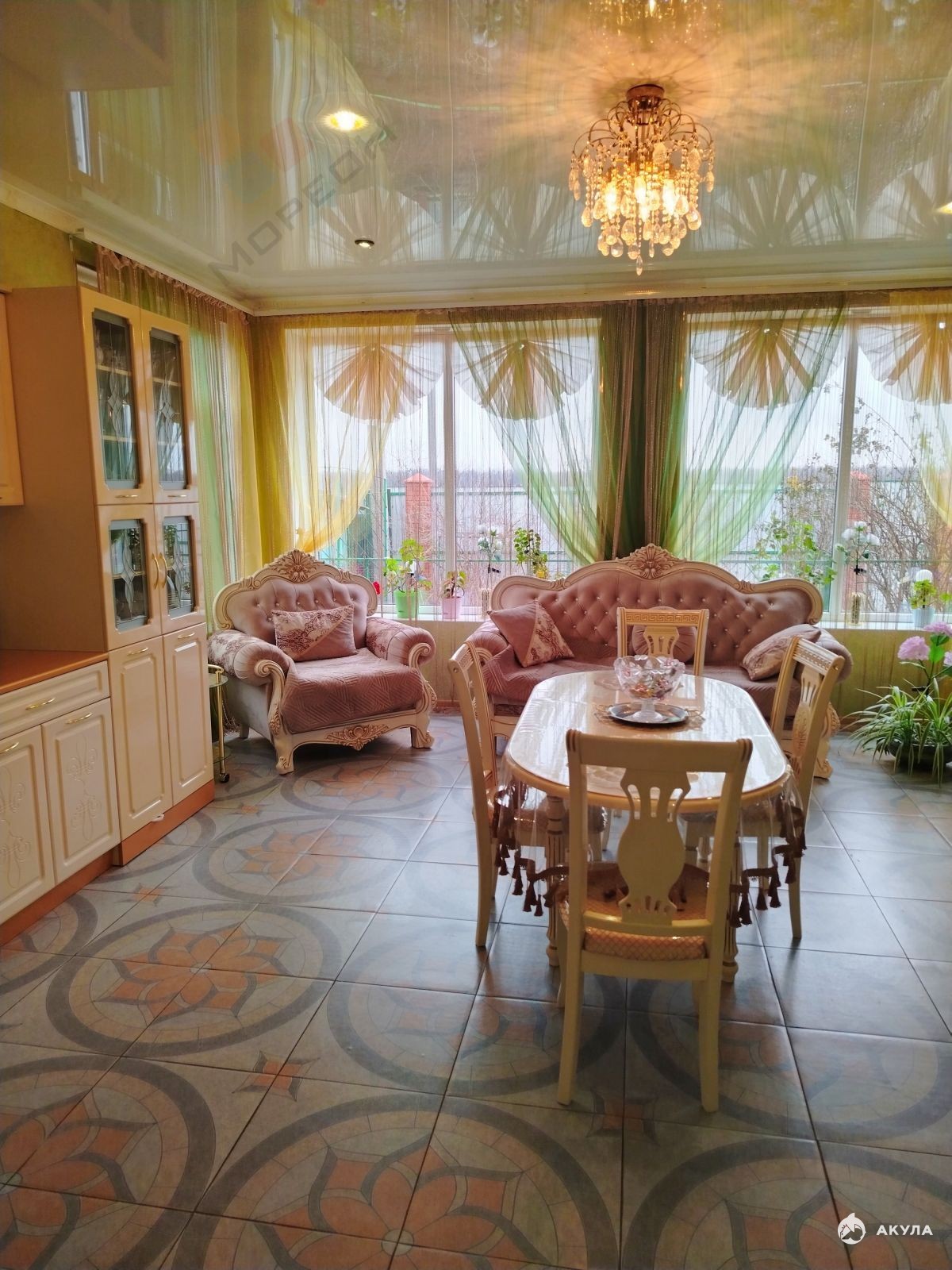 Продается большой двухэтажный благоустроенный дом общей площадью 285 кв.м, жилая площадь 111 кв. м, плюс балкон 25 кв. м . На 1 м- этаже: кухня - гостиная 35 кв. м, кухня -столовая - 18 кв. м, коридор , гостиная , одна спальная комната, санузел с ванной комнатой в плитке , вход в подвал площадью 40 кв. м.