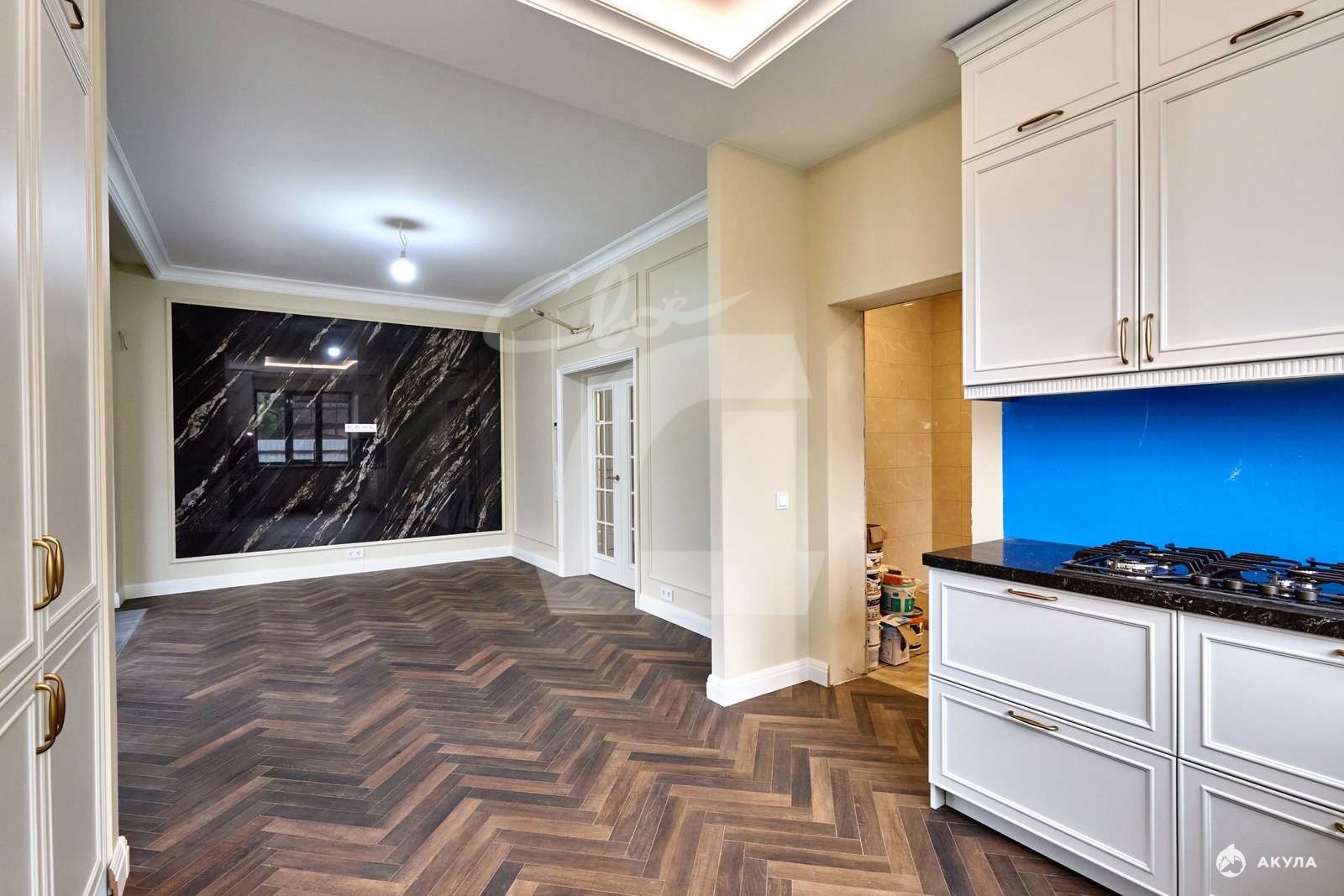 встроенная кухня с техникой и частичная меблировка;