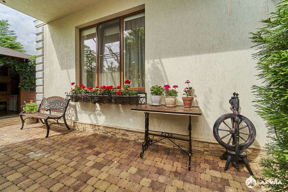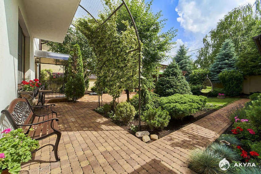 Изюминкой дома является невероятно красивая ухоженная территория с авторским ландшафтным дизайном, множеством декоративных растений и деревьев, беседкой с зоной барбекю. Есть отдельная мастерская, во дворе установлена декоративная арка, качель - все обустроено для комфортного семейного отдыха. Во дворе есть место для двух машин, навес, автоматические ворота.