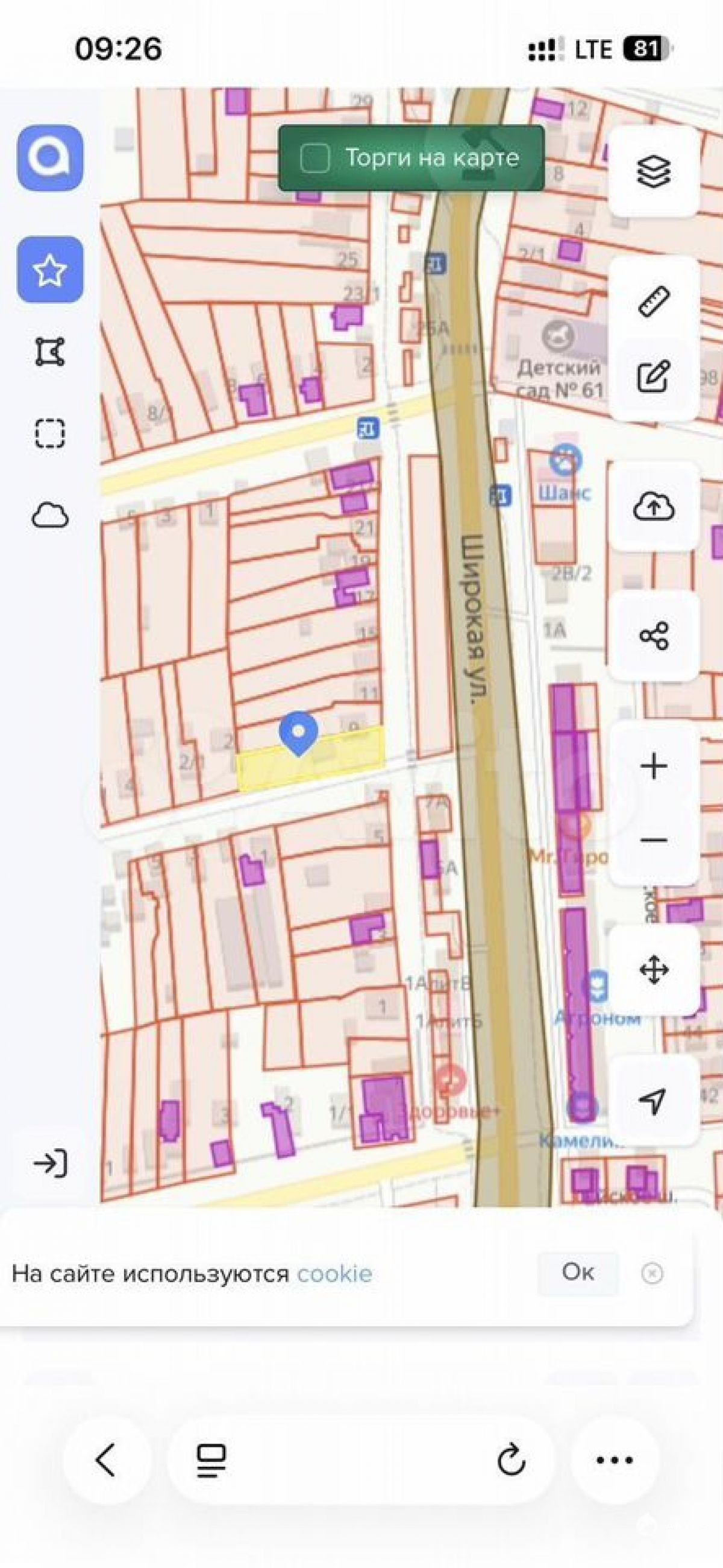 - Площадь участка