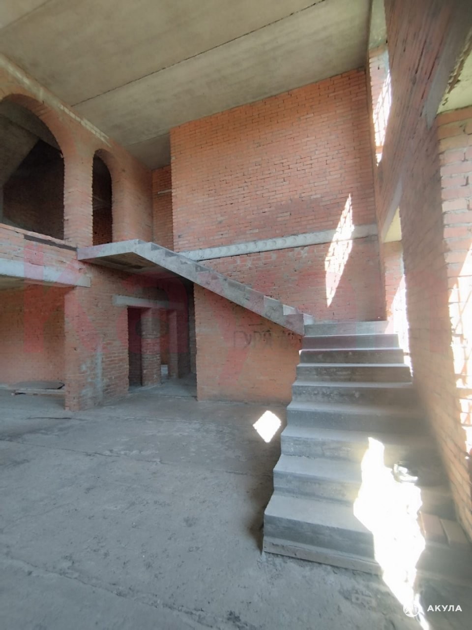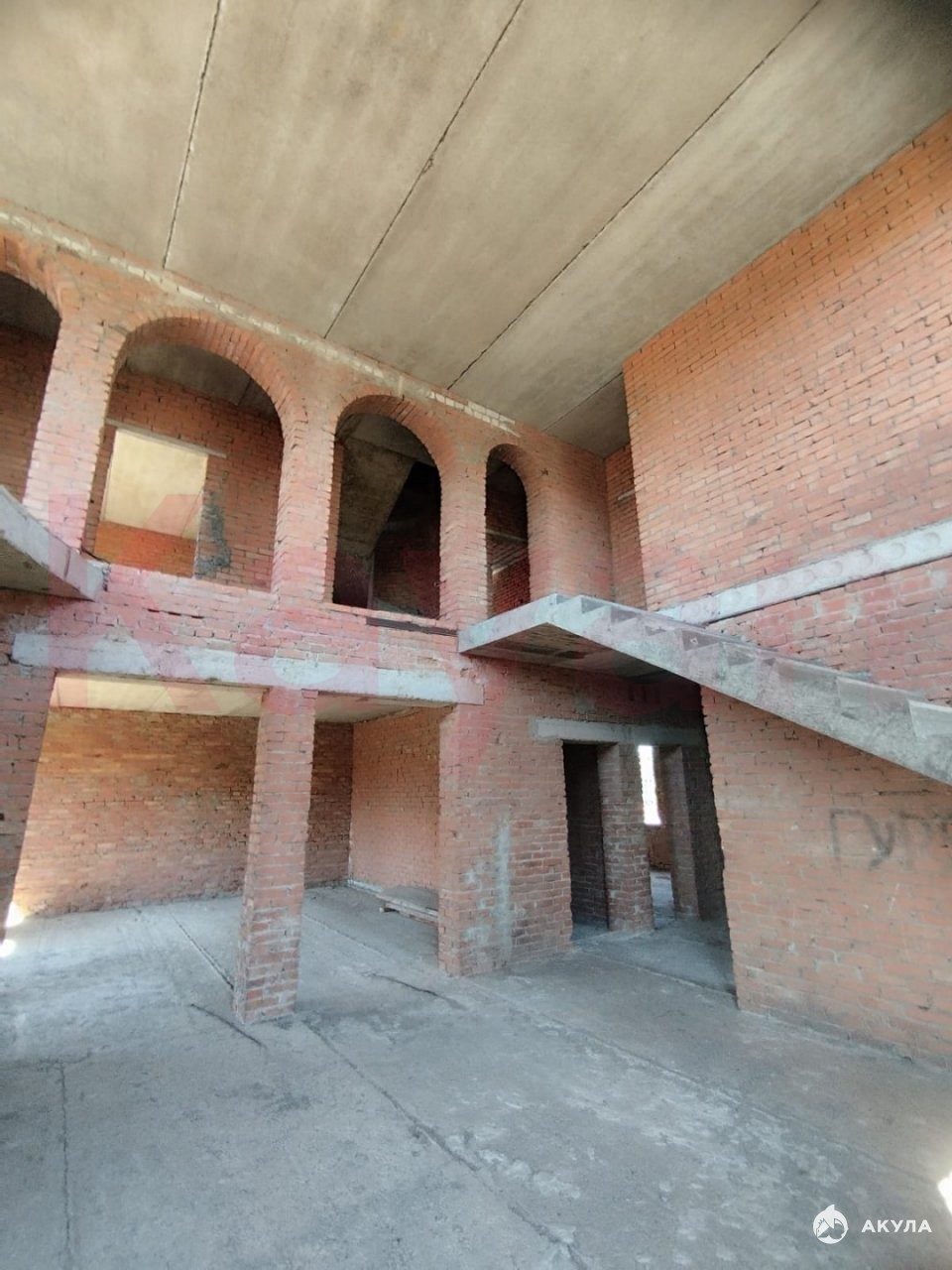 Внутреннее пространство поражает своими масштабами: холл 50 кв.м. с капитальной железобетонной лестницей, высокие потолки (3.5 м) на первом этаже, большие окна для максимального естественного освещения.