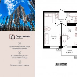 Продается квартира в жилом комплексе «Отражение». Это новый стандарт комфортного проживания от федерального девелопера «Неометрия». Дом сдан — получайте ключи в день сделки, и празднуйте новоселье уже сегодня! Современный проект комфорт-класса впечатляет передовыми...