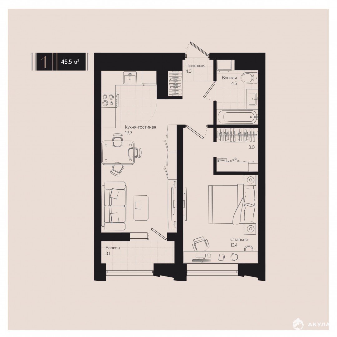 - 46 м²