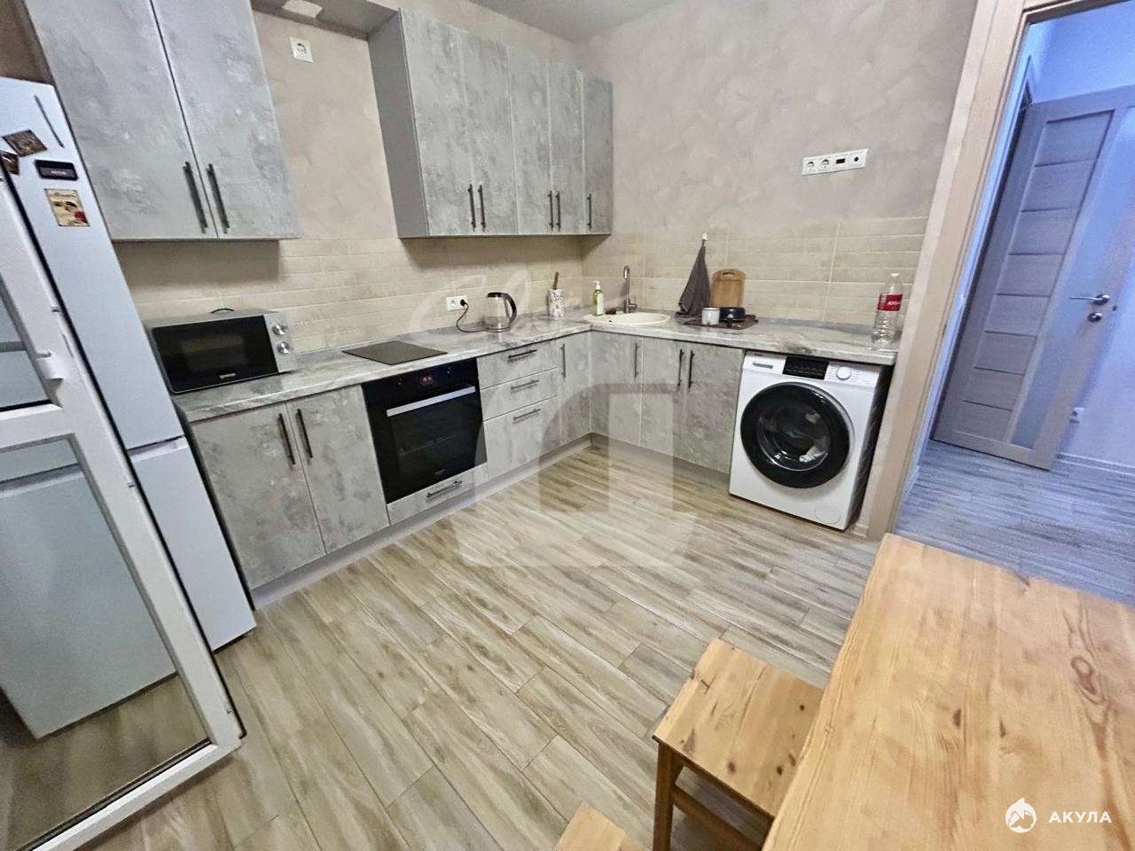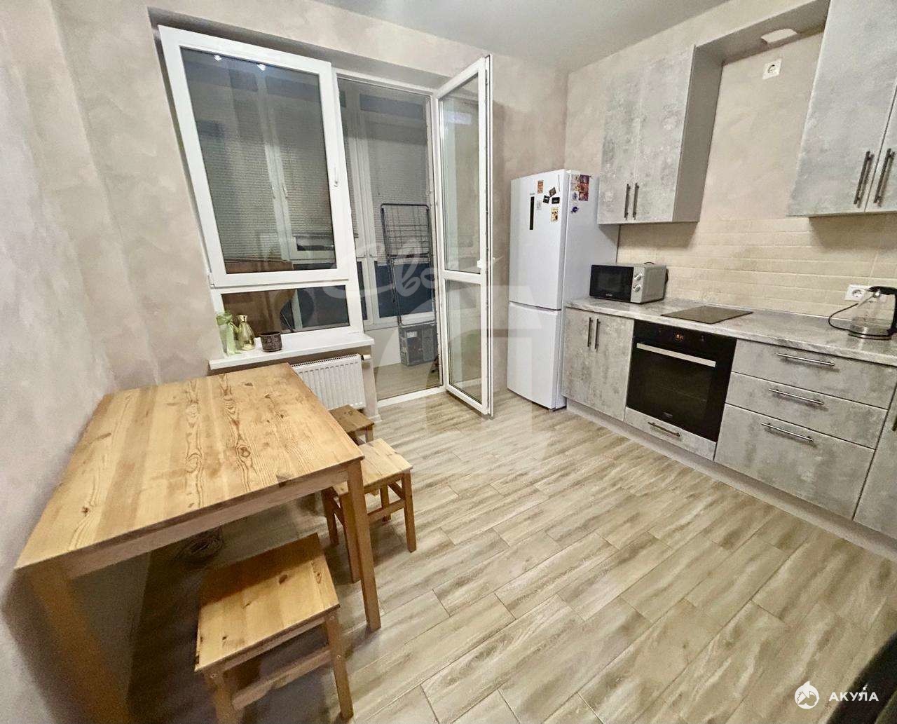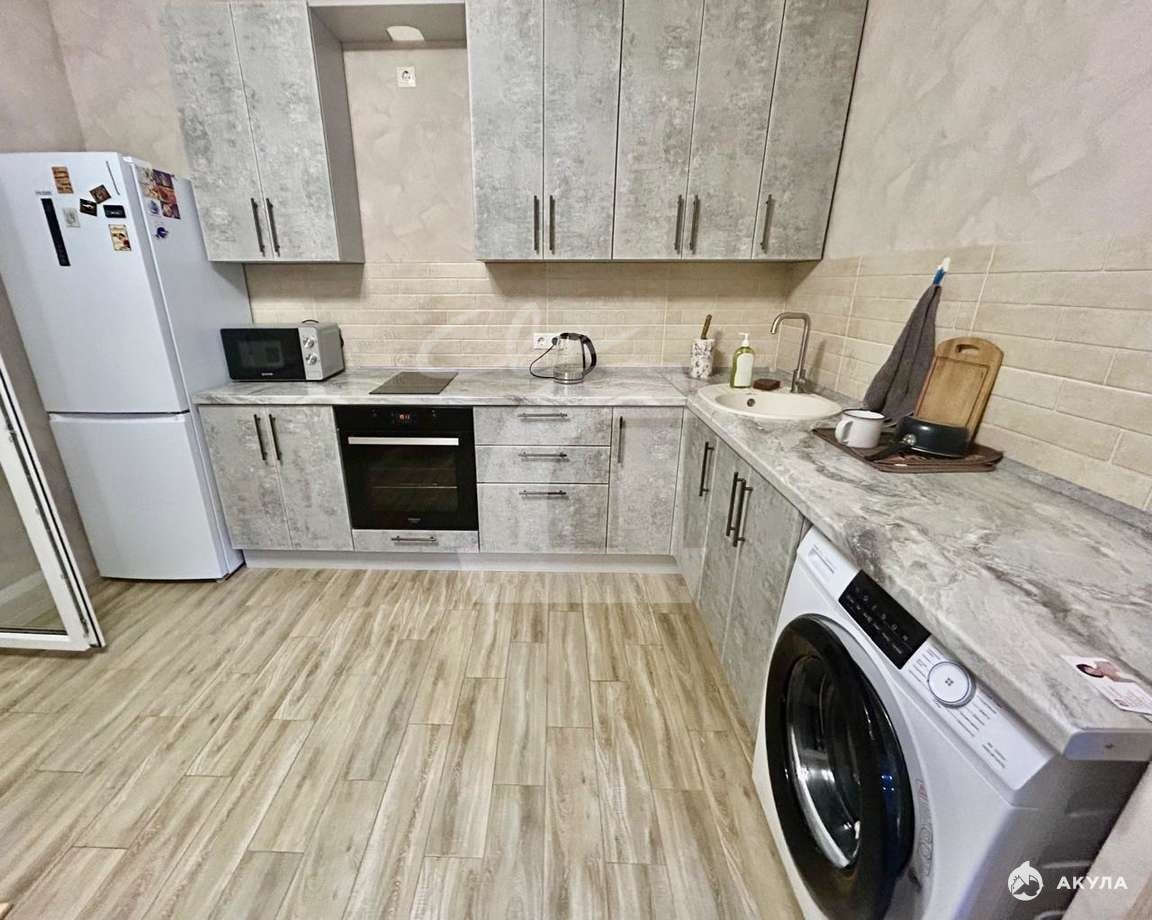 В квартире остается вся мебель в отличном состоянии: в гостиной двухспальная кровать и шкаф, на кухне- кухонная стенка, холодильник , обеденный стол со стульями+ встроенная техника.