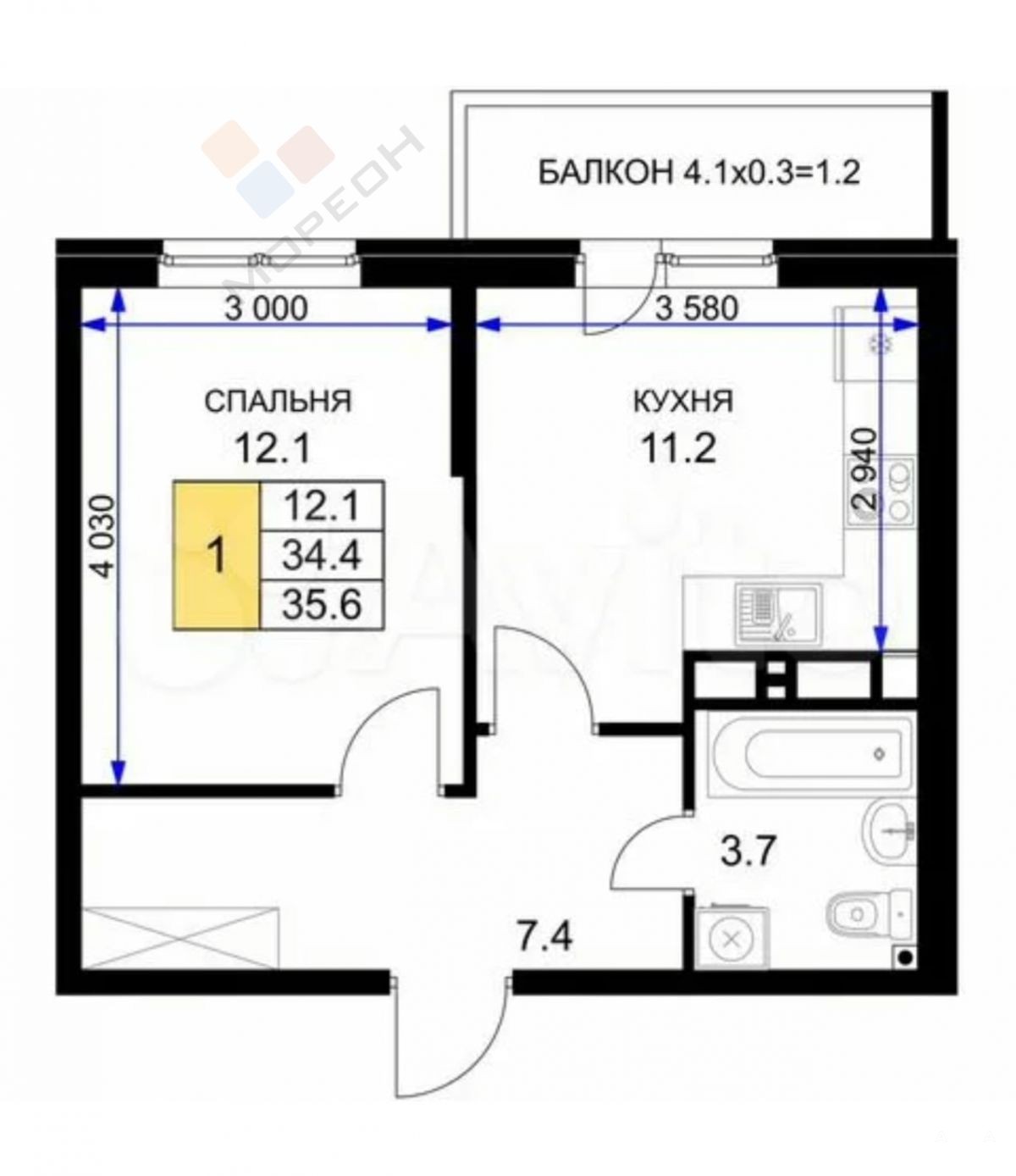 - 34 м²