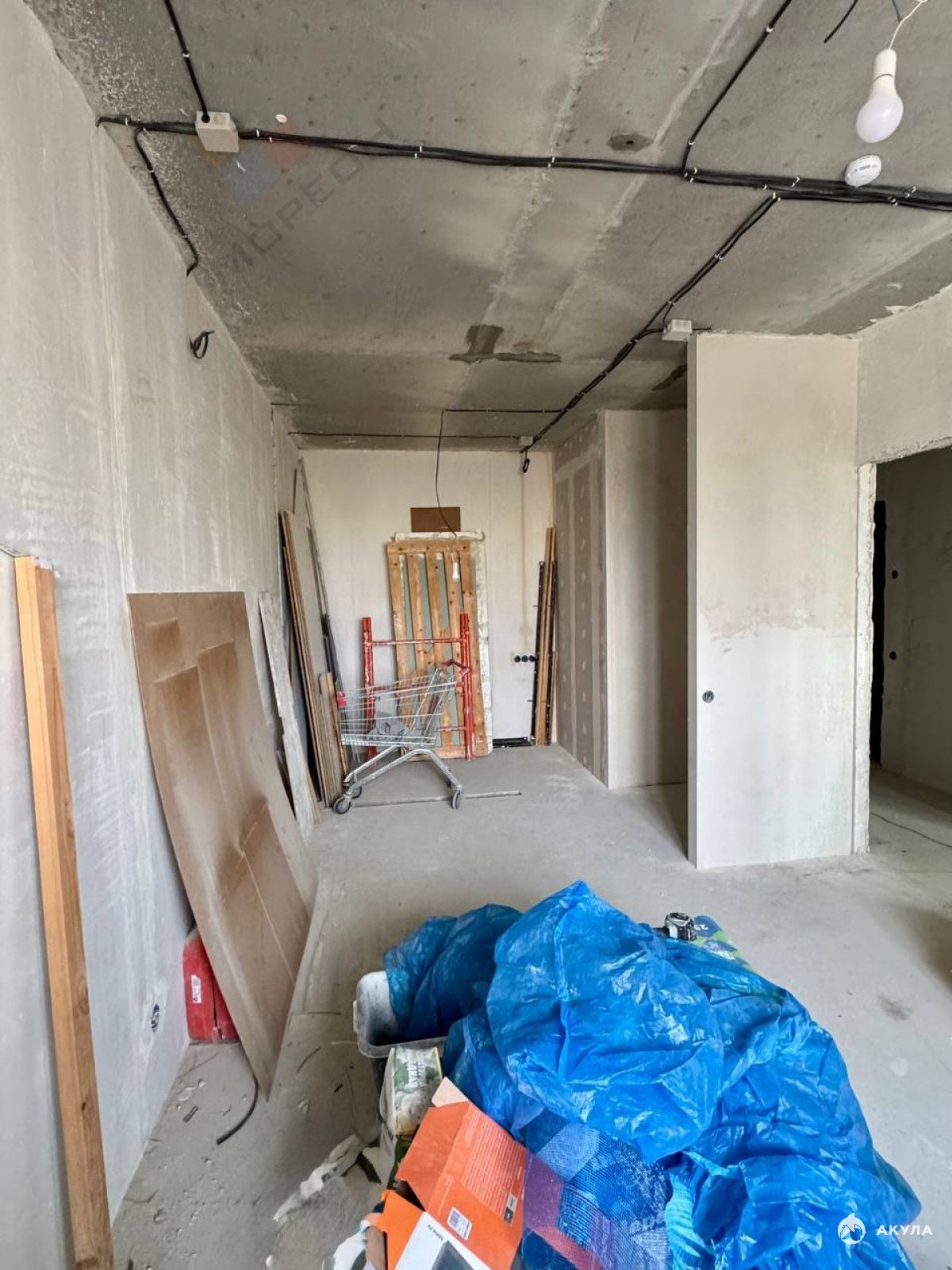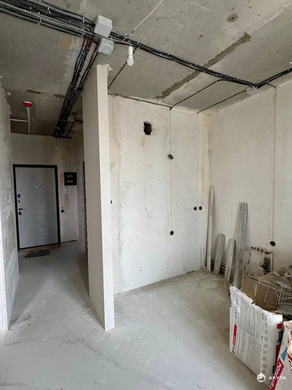 В квартире предчистовая отделка. Выполнена перепланировка. В фото прикреплен итоговый план квартиры. Выровнены, оштукатурены и отшпаклеваны стены.