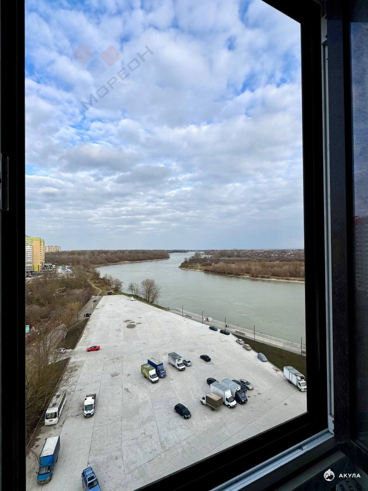 12 этаж, отличная видовая характеристика — потрясающий панорамный вид на реку Кубань и зелень.