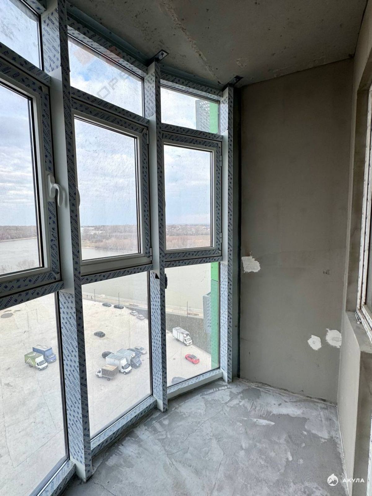 На балконе панорамное остекление в пол, откуда открывается тот самый вид.