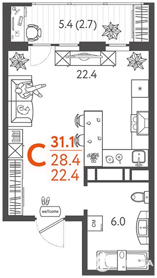 - 31 м²