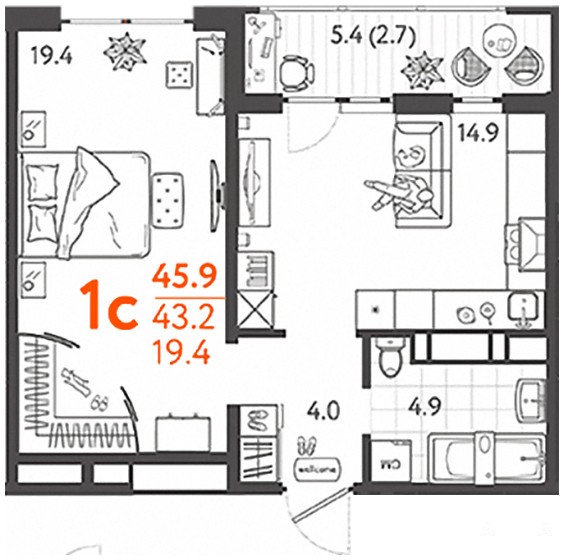 - 19.40 м²