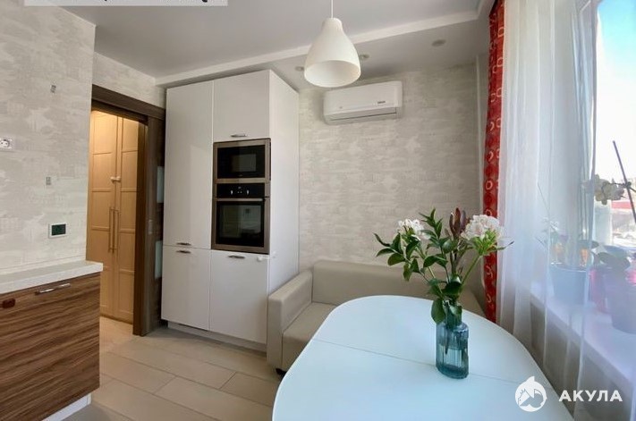Хороший дизайнерский ремонт, вид из окна на сквер с фонтаном , в шаговой доступности детский сад , так же рядом есть школа, круглосуточный магазин 7дней возле подезда, пятерочка, жилой коплекс охраняется 24/7