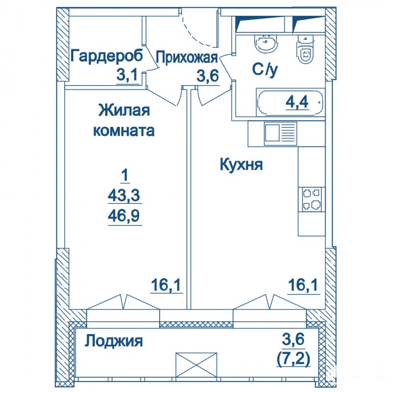 - 16.10 м²
