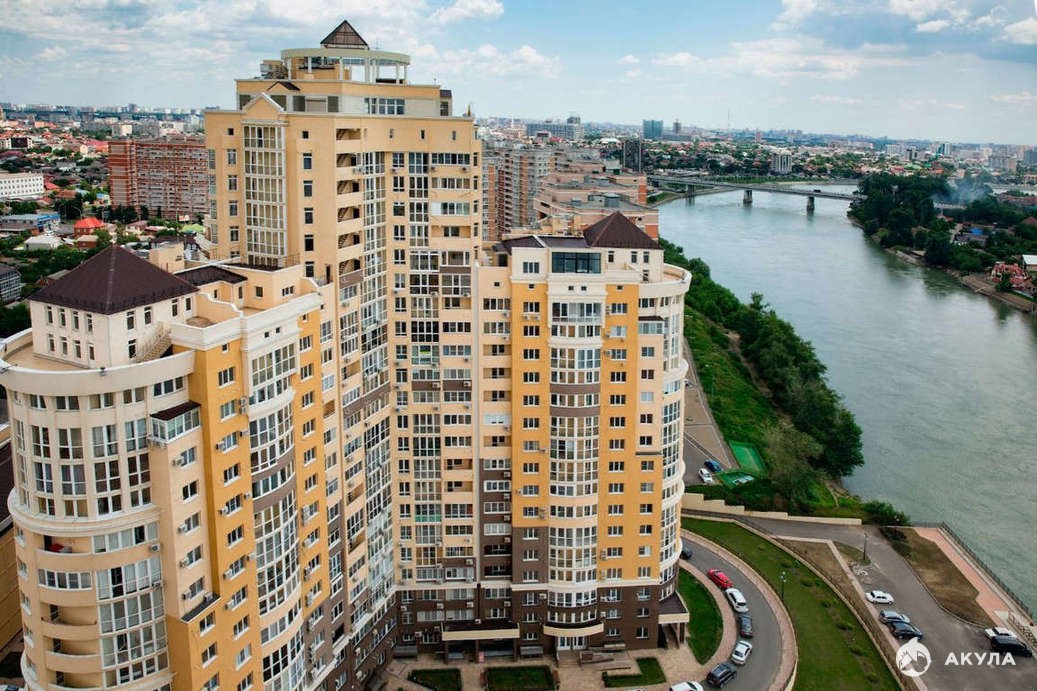 В квартире сделан качественный ремонт. Удобная планировка с просторными комнатой и кухней, есть кабинет. Вид на реку Кубань.