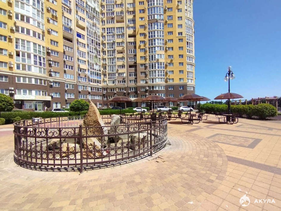 Есть наземный многоуровневый паркинг, во дворе красивые и безопасные детские, спортивные площадки, 2 фонтана, прогулочные зоны и зоны отдыха, своя набережная.