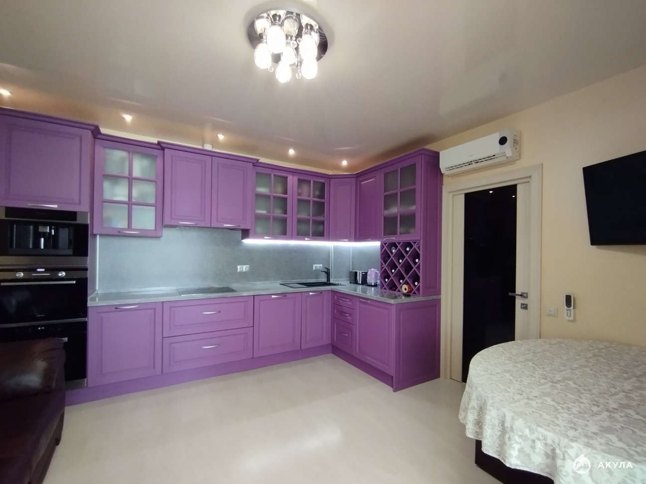 Мебель изготовлена на заказ. Вся мебель, текстиль и техника остается 2 сплит-системы, 2 телевизора, кожаный диван, кровать Askona, встроенная мебель и быт. техника На кухне бытовая техника Miele, Gorenje, LG, столешница - камень. Установлен бойлер.